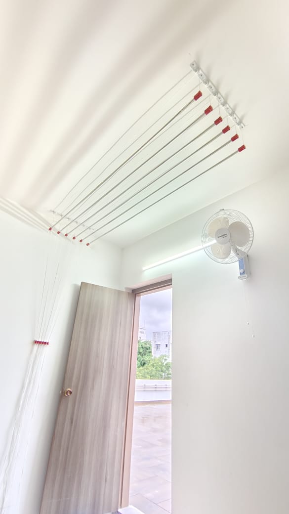 It iszero-maintenance clothes-drying hanger and a long-lasting product. It is mostly installed on the balcony with an open space for direct sunlight. The rope system is Nylon which remains safe and smooth to use even after direct sunlight. We offer mainly two types of rope systems, the 3mm polished nylon, and the 5mm thick nylon. Both ropes are designed as per the customer’s requirements.