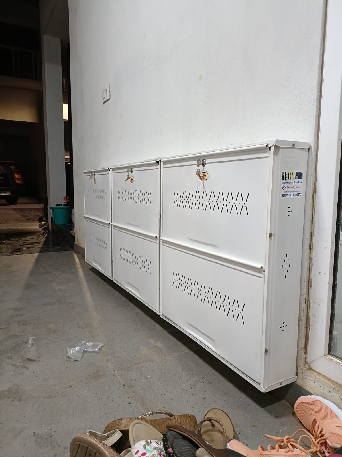 Our Shoe Rack can be easily mounted on the wall, and it becomes a valuable cabinet for your costly sneakers and shoe rack. Our Shoe rack is powered bycentral locking system, which helps to make it more secure for indoor as well as outdoor purposes. Nowadays, its also been used in offices, the corporate sector in Bangalore. Our wall-mounted Shoe rack is a reliable and useful product with zero maintenance cost.